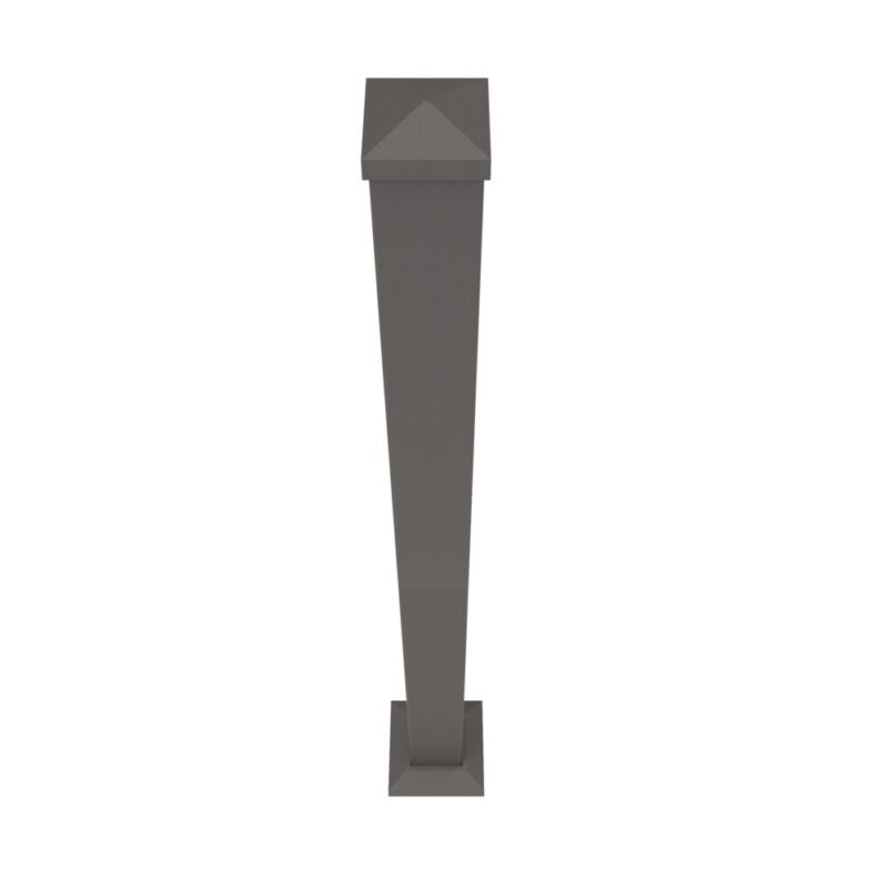 2.5in x 39in Bronze Railing Post with Trim. Posts include a connected base plate, sandwich plate, trim ring, post cap, and two vinyl shims. Remember to order a longer post for the end post at the bottom of a stair rail section.