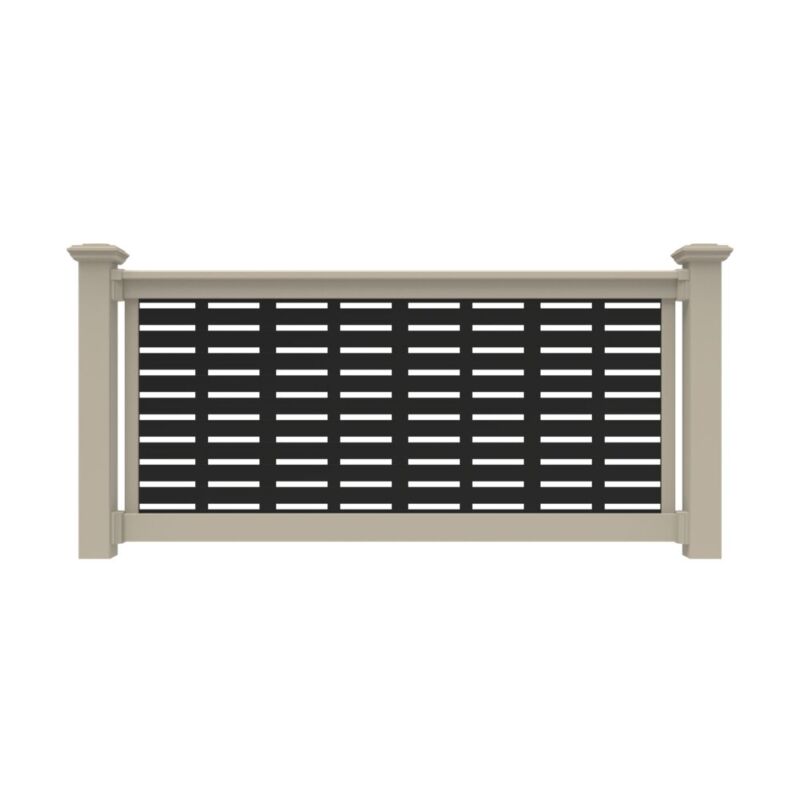 36" H x 6' L Khaki Vinyl T Style for 3’ x6’ Decorative Screen Railing, comes with Brackets. Decorative Screen and Posts Not Included. Please select 1-3’x6’ decorative screen for each rail kit.
