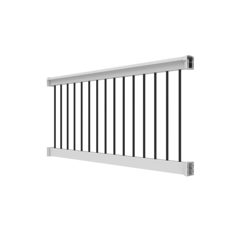 36" H x 6' White Vinyl T Style w/ Black Aluminum Baluster Railing. Round Balusters with Brackets.