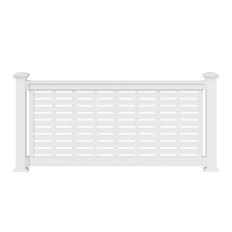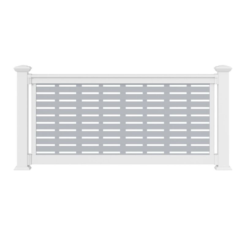 36" H x 6' L White Vinyl T Style for 3’ x6’ Decorative Screen Railing, comes with Brackets. Decorative Screen and Posts Not Included. Please select 1-3’x6’ decorative screen for each rail kit.