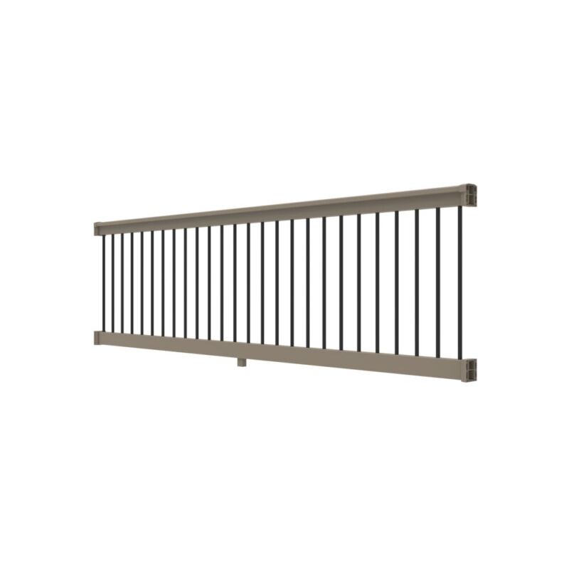 36" H x 8' L Clay Vinyl T Style w/ Black Aluminum Baluster Railing. Round Balusters with Mounting Brackets for the rails.