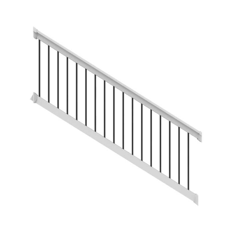 36" H x 8' L White Vinyl T Style w/ Black Aluminum Baluster STAIR Railing. Square Balusters with Brackets.