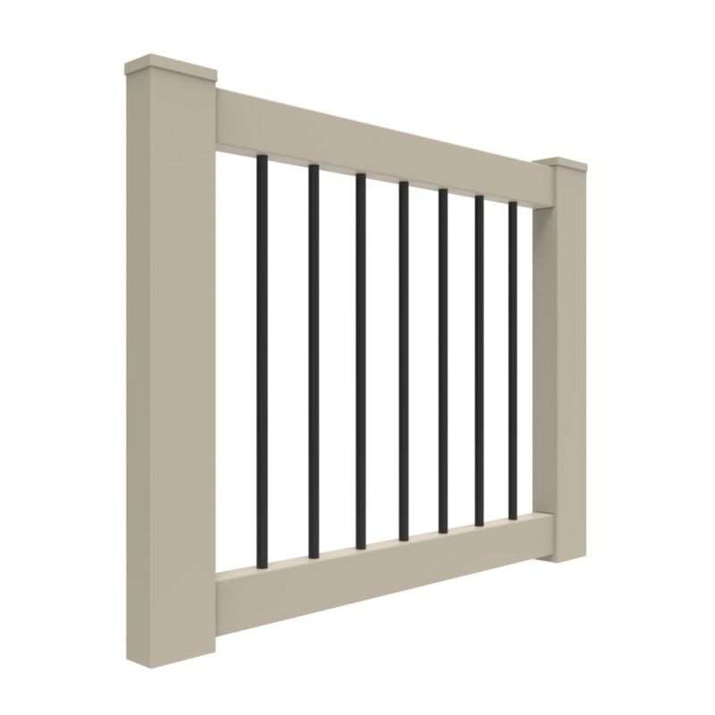 36" x 48" Clay w/ Black Aluminum Baluster Rail Gate Kit. 3/4" Black Round Aluminum Baluster. Does not include hardware.