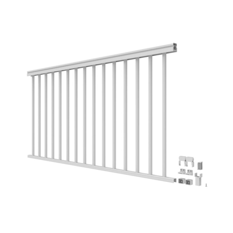 36in x 6ft White Potomac Square Flat Top Panel Kits include top & bottom rails, balusters, locking strips, brackets, & center supports.