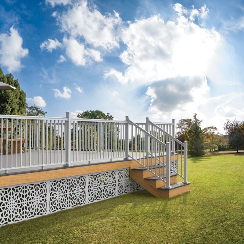 36in x 8ft White Potomac Square Flat Top Stair Kit includes top & bottom rails, balusters, locking strips & brackets.