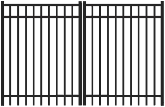 4' H x 10' W Bradford Straight Double Gate Black w/ Black Self Closing Butterfly Hinges. Gates match fence style and color