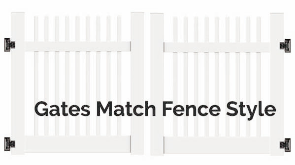 4' H x 10' W New Bedford Picket Scallop Double Drive Gate White. Gate kits are made to fit a 48" or 60" opening. Gates come with self-closing wrap hinges, but no latch.