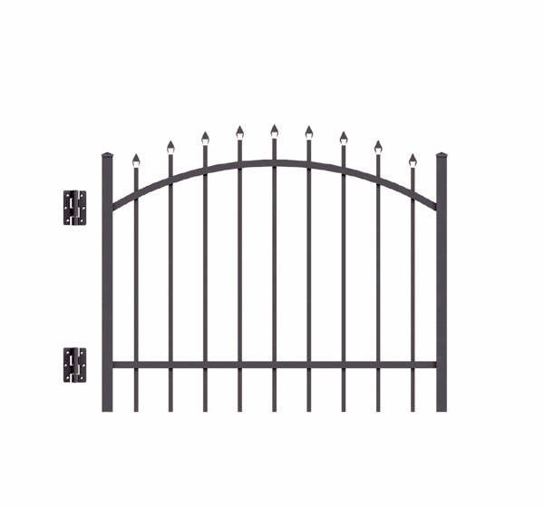 4' H x 5' W Huntington Arched Gate w/ Black Self Closing Butterfly Hinges. Gates match fence style and color