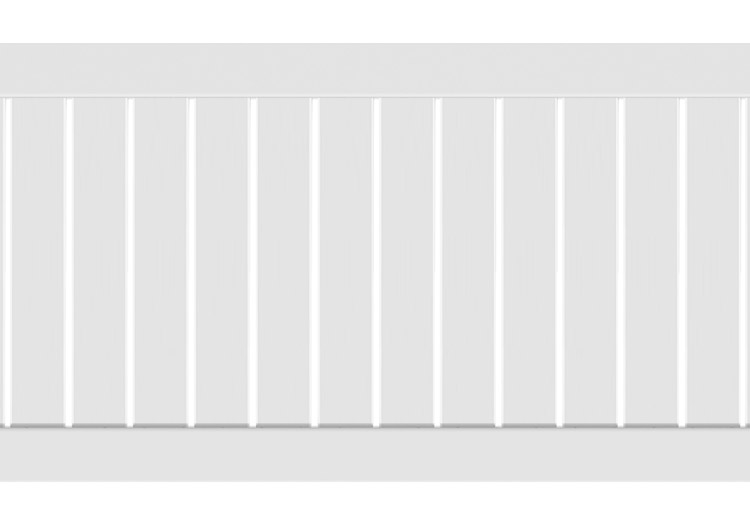4' H x 8' W 6" Semi Privacy Panel White . Package Features 2" x 6" rail with aluminum bottom suport, 14 -6" through rail pickets with with 1/2” spacing. Also available in Tan. Call for price.