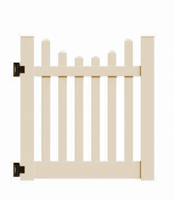 4'x46" Richmond Picket Scallop Walk Gate Tan.Gate kits are made to fit a 48" or 60" opening. Gates come with hinges but no latches. Order 2 single gates to make a double drive.
