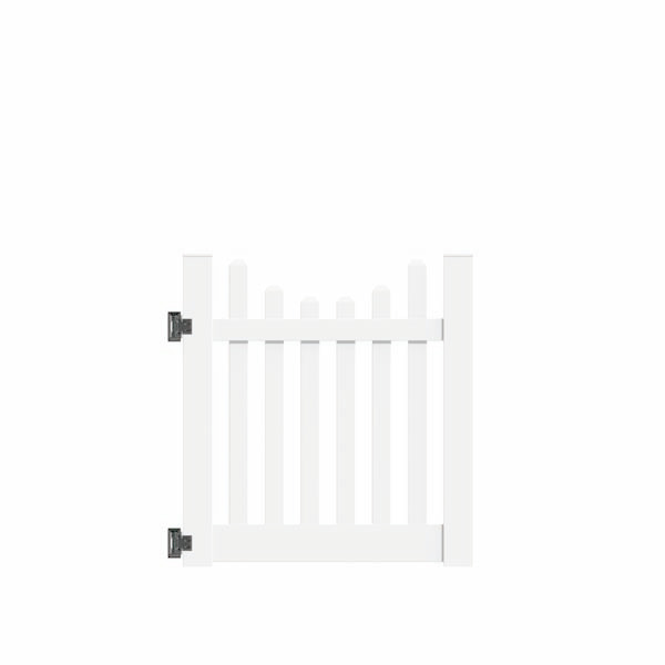 4'x46" Richmond Picket Scallop Walk Gate White. Gate kits are made to fit a 48" or 60" opening. Gates come with hinges but no latches. Order 2 single gates to make a double drive.