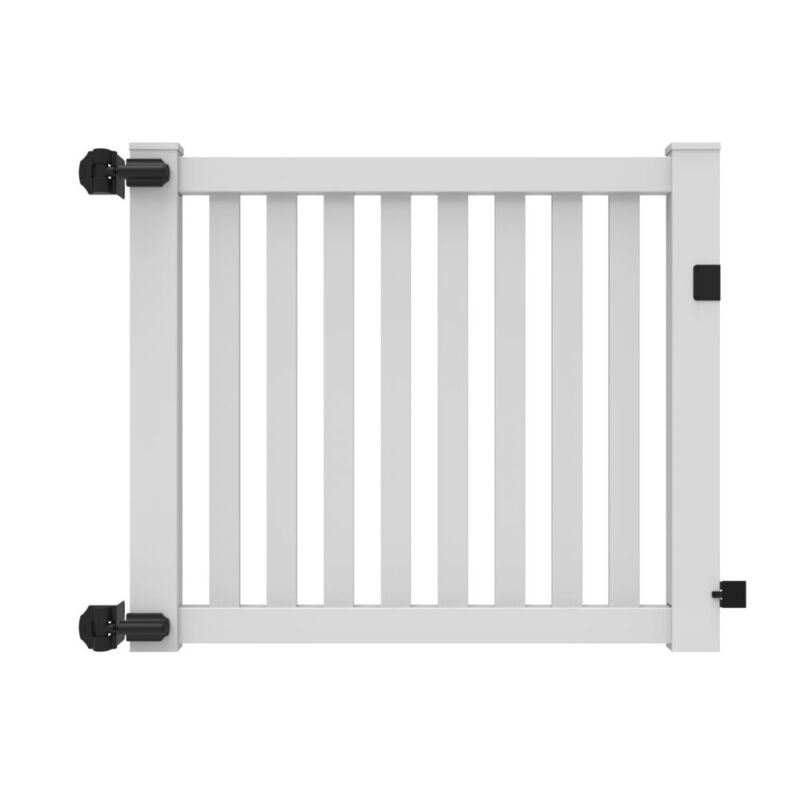 4'x58" Baltimore Walk Gate White. Gates come with self-closing wrap hinges, but no latch, drop rods, or gate stoppers. Order 2 single gates to make a double drive.