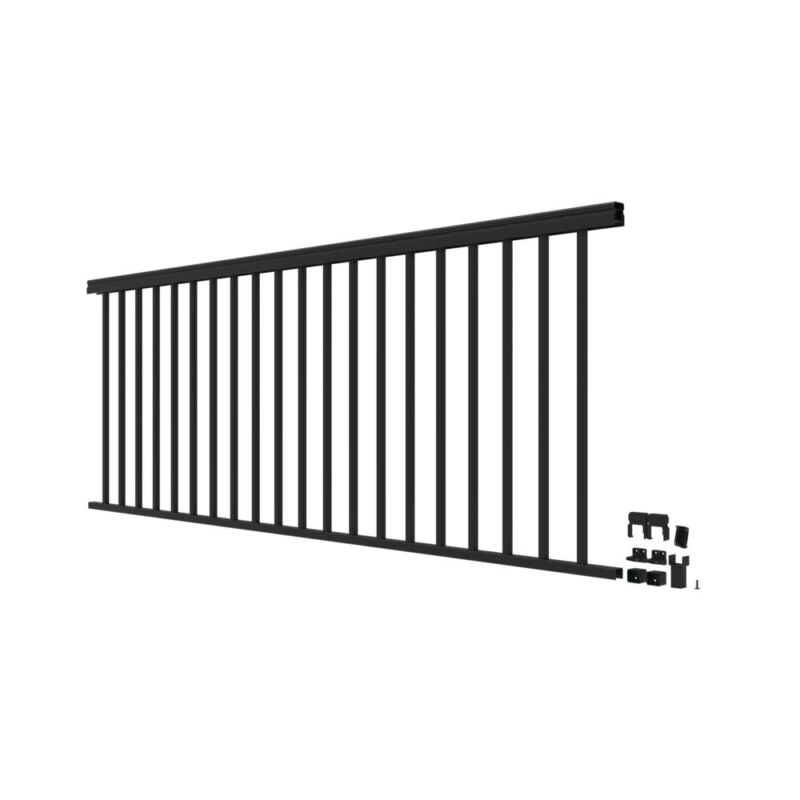 42in x 8ft Black Potomac Square Flat Top Panel Kits include top & bottom rails, balusters, locking strips, brackets, & center supports.