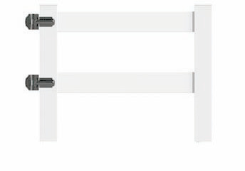 46" Wide 2 Rail Walk Gate White Gate kits are made to fit a 48" or 60" opening. Gates come with self-closing wrap hinges, but no latch. Order 2 single gates to make a double drive.