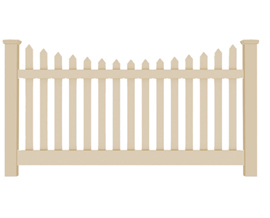 5' H x 8' W New Bedford Picket Contemporary DE Scallop Tan.Package features 2" x 6" bottom rail and 2" x 3 /12" top rail along with 7/8" x 3" pickets with 2.87" spacing.