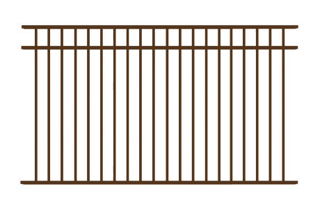 54" H x 6' W Bradford Aluminum Fence Panel Bronze. Featuring a screw less hidden fastener system, with 1" x 1" rails and 5/8" pickets. Panels can be adusted for grades and rack up to 33" per 6' panel. This style meets BOCA pool code