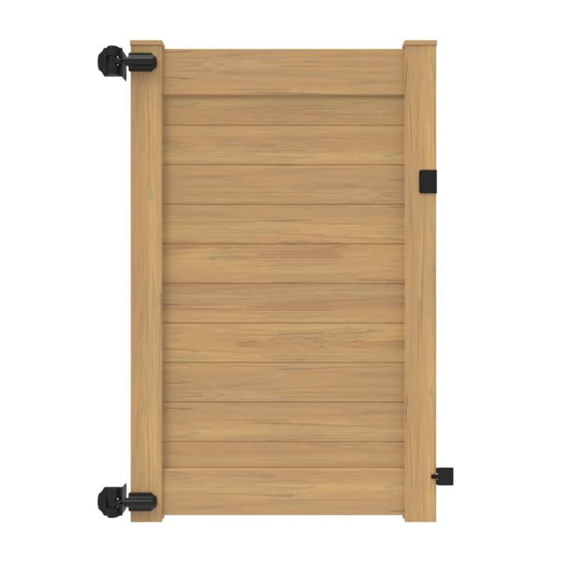 6'x46" Horizontal Chesapeake Walk Gate Woodgrain. Gate kits are made to fit a 48" or 60" opening. Gates come with self-closing wrap hinges, but no latch. Order 2 single gates to make a double drive.