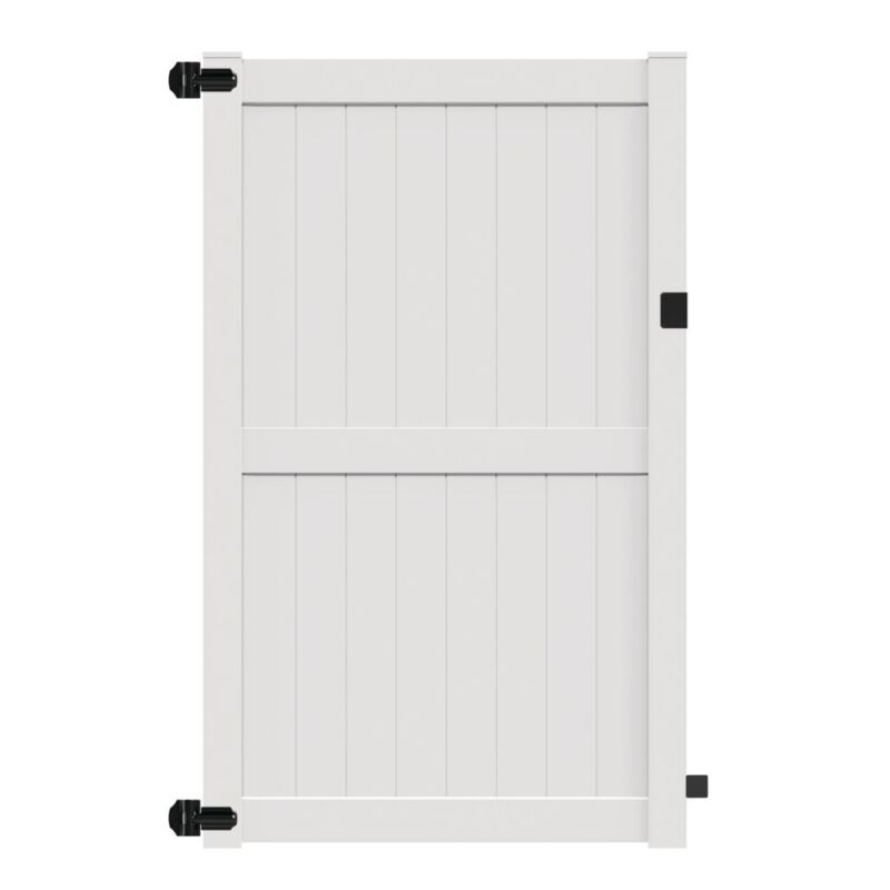 8' H x 58" W Colden Walk Gate White. Hinges included, but latch sold separately. You will need two different post inserts for the hinge post of this gate, A 58” and a 82” insert. Please call for more information.