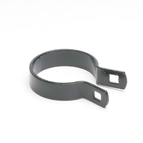 2 1/2" Black Brace Band Plain. Used for all heights of residential fence. Brace Bands are used to attach rail ends to the terminal post using a 5 1/6 x 1 1/4" Nut and Bolt.