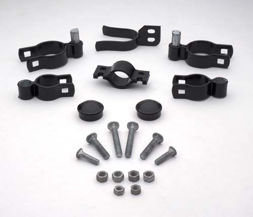 Residential Double Black Gate Hardware. Used for 2 1/2" post and 1 3/8” gate frame. Includes all fittings and nuts and bolts for installation.